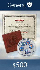 With your gift of support you will play a vital role in preserving history and restoring one of our country’s most cherished historic sites-Pearl Harbor. You will receive a “Stock Certificate” suitable for framing, and most importantly, an opportunity to remember or honor a loved one on your personal square foot of “virtual space” on Pearl Harbor.